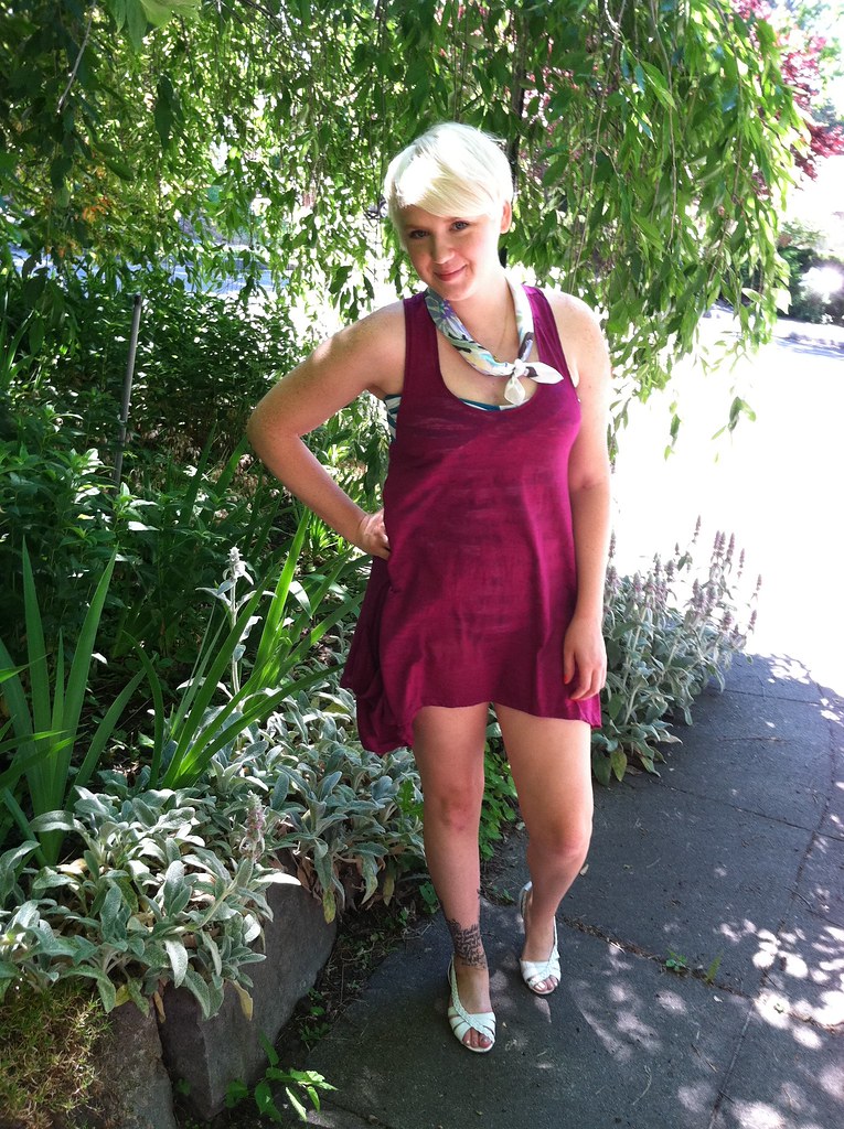 I recently participated (am participating) in a scarf swap. When the scarf I would be receiving was on it’s way to me I saw a man at my local coffee shop and this man happened to be a house painter. I’ve noticed here and there that house painters often tie hankercheifs losely around their neck. (For sweat reasons maybe? This gentleman was using it to hold his sunglasses.) And as soon as I saw it I thought “I hope the scarf I’m getting is little so that I can do that!” (Not use it for sweat, but fashion around my neck like so.) And low and beyond, this fine lady sent me this fine scarf! Let the haters hate, but dreams really do come true.